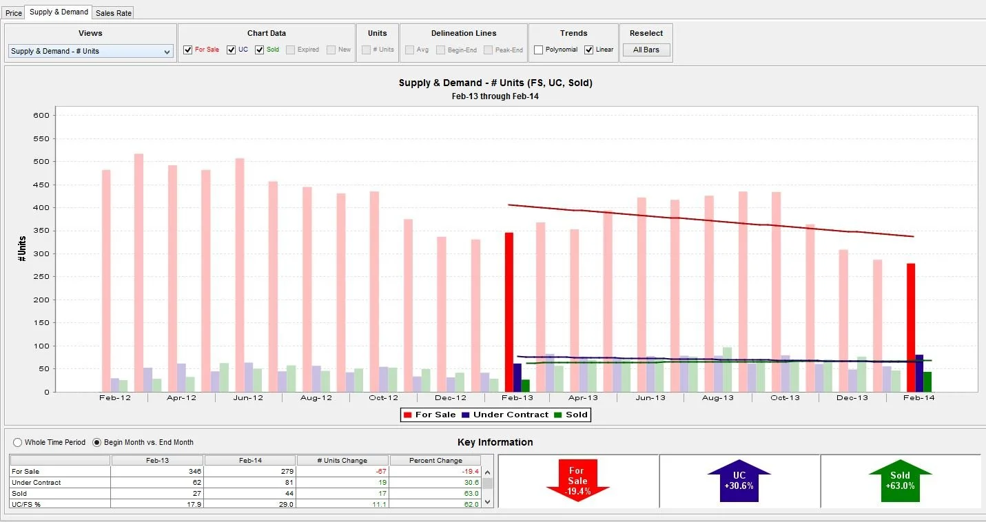 2014 is setting up much like 2013 did. Year over year inventory is down in Q1 while buyer activity is higher. Supply and demand still favors sellers entering the market. The unofficial spring market for 2014 hasn't even begun yet . The delay is due to a very cold and prolonged winter. It's true, talk to any broker and they'll rattle off exactly how many clients they have waiting for the snow and ice to melt before they list their property.